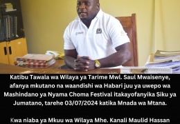 Tuma: June 28th, 2024 Katibu Tawala wa Wilaya ya Tarime Mwl. Saul Mwaisenye, afanya mkutano na waandishi wa Habari juu ya uwepo wa Mashindano ya Nyama Choma Festival itakayofanyika Siku ya Jumatano, tarehe 03/07/2024 katik...