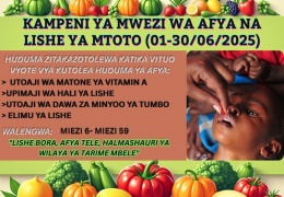 Tuma: June 1st, 2025 MKURUGENZI MTENDAJI WA HALMASHAURI YA WILAYA YA TARIME ANAKARIBISHA WANANCHI WOTE KATIKA KUADHIMISHA MWEZI WA AFYA NA LISHE YA WATOTO, KUANZIA TAREHE 01/06/2025 - 30/06/2025...